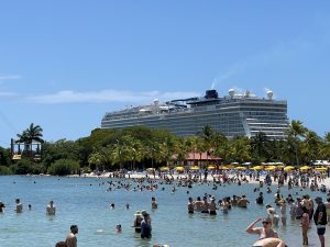Beach and our ship.
