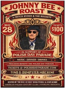 We are thrilled to invite you to an unforgettable evening: the Johnny Bee Roast of Mitch Ryder & The Rockets! Join us on May 28, 2026, at the American Polish Century Club, 33204 Maple Lane Dr, Sterling Heights, MI 48312. (14 mile and Hoover) Doors open at 6 p.m. Dinner served at 7 p.m.